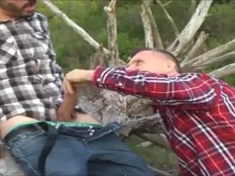 Diese zwei Männer tragen Karohemden, während sie in der Mitte von nirgendwo sind und sich gegenseitig in de freien Natur absaugen. Genieße es!