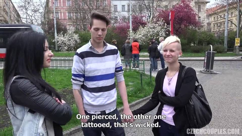 Dieses Mädchen macht ein Interview mit Leuten auf der Straße für diesen Kameramann, der versucht, zufällige Mädchen zu finden.