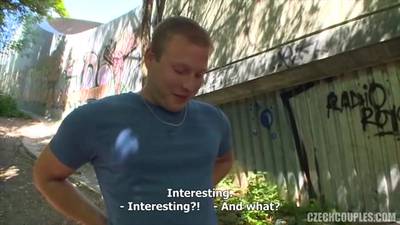 Eine Schlampe bietet einem Paar an, zu dritt zu ficken