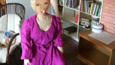 Dieser Mann pisst auf eine Plastikpuppe
