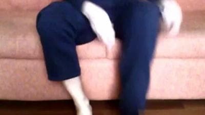 Dieser Mann mag es, einen String un Strümpfe zu tragen, wenn er hart wird un sich selbst zu Hause vor der Kamera abwichst. Liebst du es auch?
