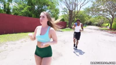 Brünette fickt im Garten mit einem schwarzen harten Schwanz