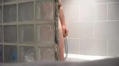 Hier sehen wir einen Kerl in der Dusche, der bespitzelt wird und wir lieben es, uns dieser Szene beizuwohnen und ihn auch in Aktion zu sehen.