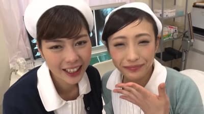 Schöne japanische Krankenschwestern lieben es, Schwänze zu lutschen, weil diese drei Schätzchen sein Fleisch im Mund lieben.