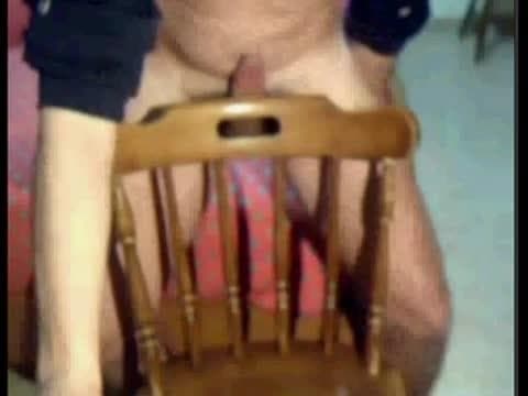 Dieser Typ mag es eigenartig. Deshalb sehen wir, wie er seinen Schwanz durch den Stuhl schiebt, um sich einen Orgasmus zu besorgen.