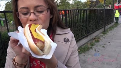 Brünetter Teenager mit Brille genießt den Bums