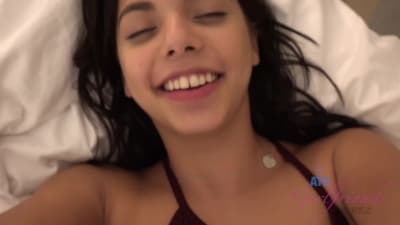 Eine brünette Frau spreizt ihre Beine auf dem Bett, um einen Mann zu ermutigen, ihre Muschi zu ficken. Das ist es, was sie seit ihrer Ankunft im Hotel macht