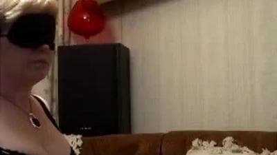 Diese Blondine mit verbundenen Augen genießt seinen ganzen Schwanz in ihrem Mund, während sie eine Augenbinde trägt. Sie wird auch hart gefickt.