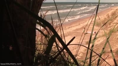 Jemand spioniert diesem Paar am Strand aus. Sie glauben, sie seien ganz allein und könnten unter vier Augen Sex haben. Sie irren sich.