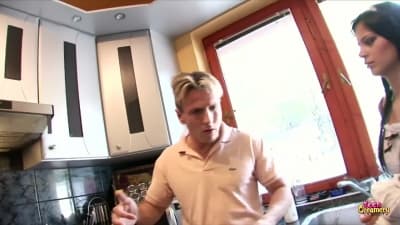 Diese wunderschöne Brünette, die große Brüste hat, wird gut in Doggy Style wie eine kleine Schlampe genommen werden und wird gut saugen gleichmäßig