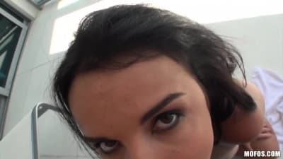 Die super sexy Dillion albert herum, zeigt ihre Titten und gibt an. Sie fühlt sich so entspannt, dass sie trotz anfänglicher Schmerzen anal probiert.
