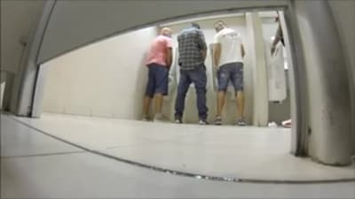 In diesem Video sehen wir mit Vergnügen das Geschehen auf der öffentlichen Toilette der Männer. Viele Leute freuen sich!