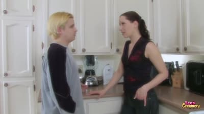 Dieser blonde Teenager hat eine tolle Zeit, als er eine sexy brünette MILF ficken darf, die es kaum erwarten kann, sein Sperma zu bekommen.