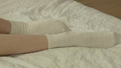 Ein hübsches junges Mädchen liegt im Bett in ihrem hübschen kleinen weißen BH-Oberteil und Höschen. Ihr Freund betet ihren süßen Körper an.