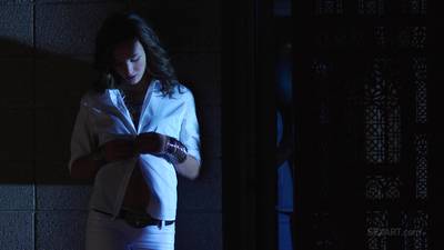 Hier ist ein softer und sinnlicher Film mit einer schönen Brünetten, die einen aufregenden Striptease für ihren Mann zeigt.