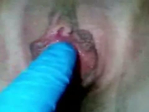 Nach dem Duschen und der Rasur ihrer Muschi lässt sich diese dicke Frau mit Brille die Muschi anfassen, während sie ihre großen Brüste streichelt.