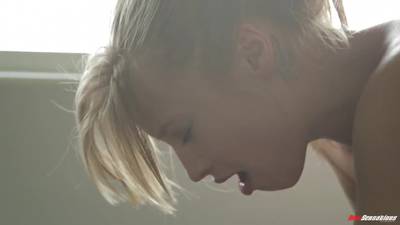 Geile Blondine geht auf den großen Schwanz ihres schwarzen Mannes zu und fängt an, ihn richtig gut zu saugen und will spüren,