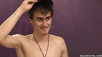 Er zeigt uns, wie er seinen Schwanz rubbelt