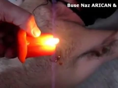 Ein maskierter Mann wird dominiert. Ein Typ tropft heißes Kerzenwachs auf ihn und der andere Kerl lässt ihn seinen Schwanz lutschen.