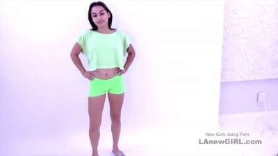 Perverse Brünette, die von einem Fake-Agenten für ein Fotoshoot-Modeling-Vorsprechen ausgewählt wurde, darf Schwänze lutschen und wird gefickt.