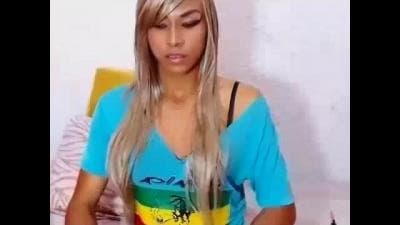 Eine junge kleine Latino-Tranny hat Spaß mit ihrem großen Schwanz in der Hand. Während sie sich einen runterholt, spricht das Mädchen mit ihren Fans.