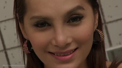 Eine schöne Trans-Alica, die einen Dildo in der Hand hält!