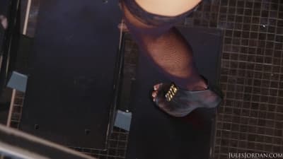 Vina Sky, ein asiatisches Mädchen, das gerne fickt, wird von einem Typen mit viel Energie verprügelt. In ihren schwarzen Dessous sieht sie heiß aus.
