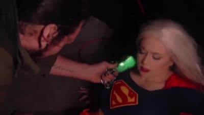 Ein Super-Girl mit einem großen starken Körper wird von ihrem Kryptonit gefangen genommen und hart gefickt, wobei ihr die großen Brüste wackeln.