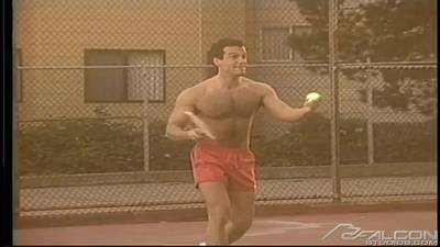 Diese Jungs spielen Tennis und einer von ihnen ist einfach scheiße darin. Aber nach dem Tennis in der Dusche wird er an etwas anderem nuckeln.