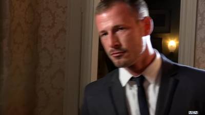 Hier sehen Sie, wie dieser Geheimagent seine Feinde fertig macht. Er nimmt seine Pistole aus der Hose.