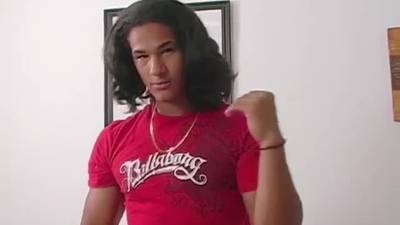 CJ ist ein muskulöser Macho mit langen Haaren, er zeigt seinen Körper und holt sich am Ende am Boden einen runter.