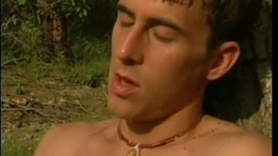 Draußen auf einem Feld, versteckt hinter einem Baum, finden wir einen gut aussehenden Mann, der mit seinem Schwanz spielt und die frische Luft genießt.