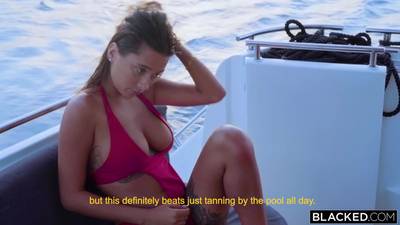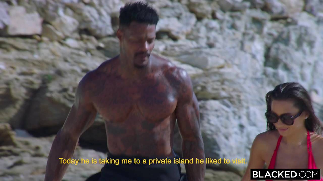 Liya Silver wird einen großen schwarzen Schwanz auf einem paradiesischen Strand blasen und dann in die Doggy-Position wechseln.