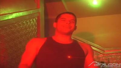 Drei Schwule und zwei von ihnen teilen sich einen Schwanz, während sie sich einen runterholen. Es ist ein schöner Vintage-Clip.