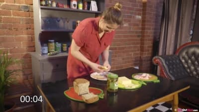 Mila bereitet ein Rezept vor und aus irgendeinem Grund wird sie erregt und fängt an, sich sinnlich zu berühren. Sie steckt sich einen Dildo tief hinein