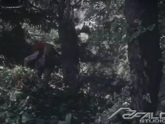 Der Typ spielt mit seinem Schwanz unter einem Baum