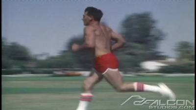 Athletischer Typ mit vielen Muskeln holt sich einen runter