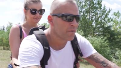 Candy Alexa geht mit ihrem Freund wandern, auf dem Rückweg werden sie auf dem Rasen im Garten ficken, sie haben es zu eilig, um zu ficken.