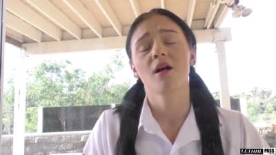 Der Lüstling wird die junge Brünette gut ficken, er hat zwar keinen großen Schwanz, aber er weiß, wie man einen Schwanz stößt.