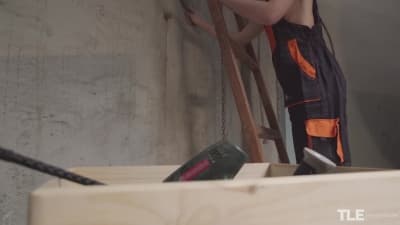 Sie wurde bei der Arbeit auf der Baustelle geil, ohne sich um etwas zu kümmern, zog sich aus und begann zu masturbieren.