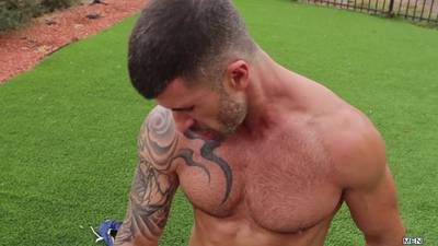 Hans Berlin liebt es, die Zeit mit Jessie Colter, Adam Killian, Philip Aubrey und Trenton Ducati in diesem Outdoor-Fick-Video zu genießen.