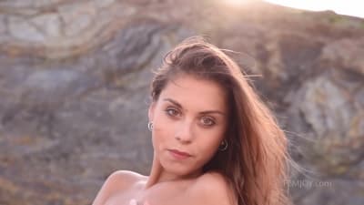 Sabrisse macht einen sinnlichen Striptease am Strand
