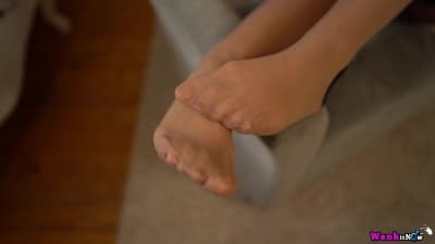 Roxi Keogh zeigt uns, dass ihre Füße eine perfekte Waffe sind, um Freude zu bereiten. Deshalb benutzt sie sie, um diesem Mann, der einen Handjob gibt