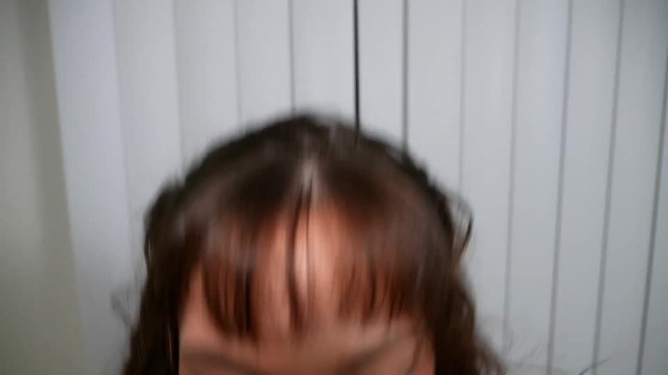 Brünette mit Pony geht auf die Knie und lutscht den Schwanz eines Kerl