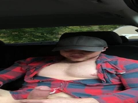 Er zog seine Hose aus und fing an, seinen großen Schwanz zu streicheln, bis er sich im Auto die Hand voll Sperma spritzt.