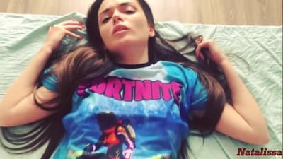 Fortnite-Fan-Schlampe lässt sich in den Mund ejakulieren