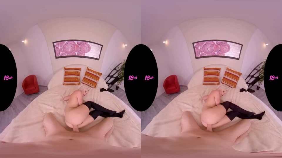 Junge attraktive Huren - eine blonde Frau in Strümpfen, eine Brünette in Dessous ficken in Positionen und lutschen Schwänze in der virtuellen Realität