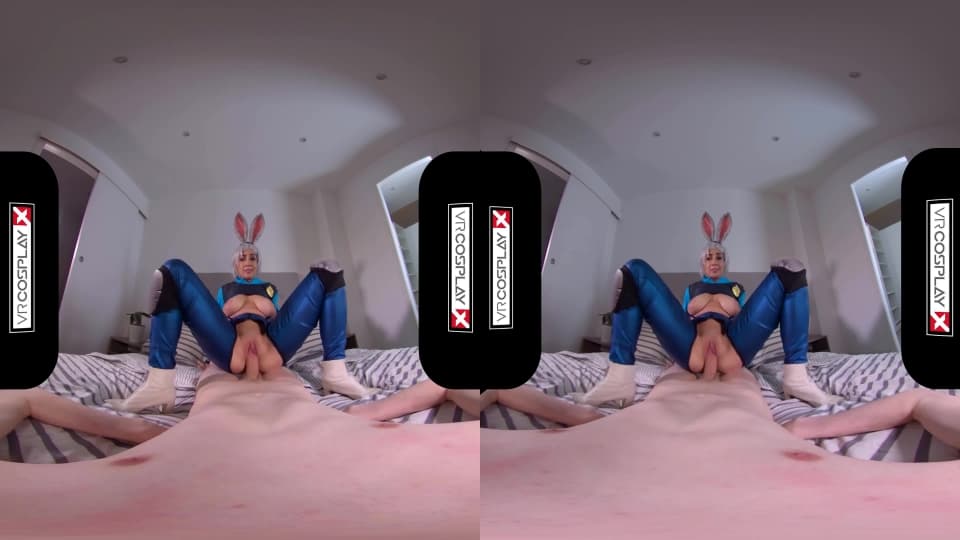 In einer weiteren Folge von Virtual-Reality-Sex siehst du eine vollbusige Schlampe in einem Bunny-Cosplay-Outfit,
