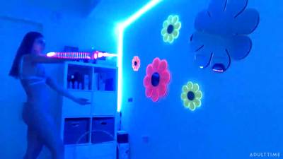 Das sublime blauhaarige Mädchen hat Solo-Spaß mit einer Reihe von Lichtern und ihrem Vibrator. Verpassen Sie es nicht!