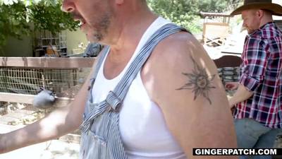 Die schöne Ginger ist eifrig zu diesem Cowboy beim Ficken, denn er füllt ihren gierigen Mund aus und bedeckt ihre großen Titten mit seinem leckeren Sperma
